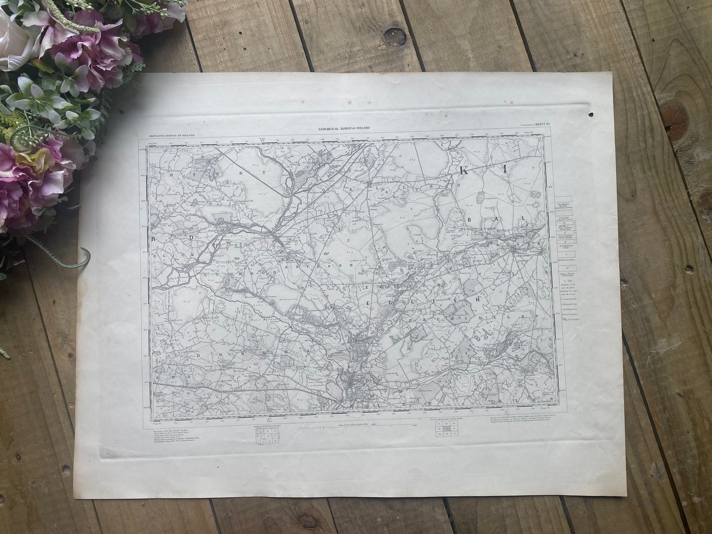 Geological survey of Ireland map of Parsonstown-Birr -banagher- Shannon harbour-kinnity-cloghan Co. Offaly- kings county. Also Galway. Sheet 117. Engraved at the ordnance survey office Dublin. First published 1863. Director general; Sir. R.I Murchison (1792-1871). Scottish geologist and member of Geological Society of London. Antique Map. 24 inch x 19 inch . Unframed . Victorian period.