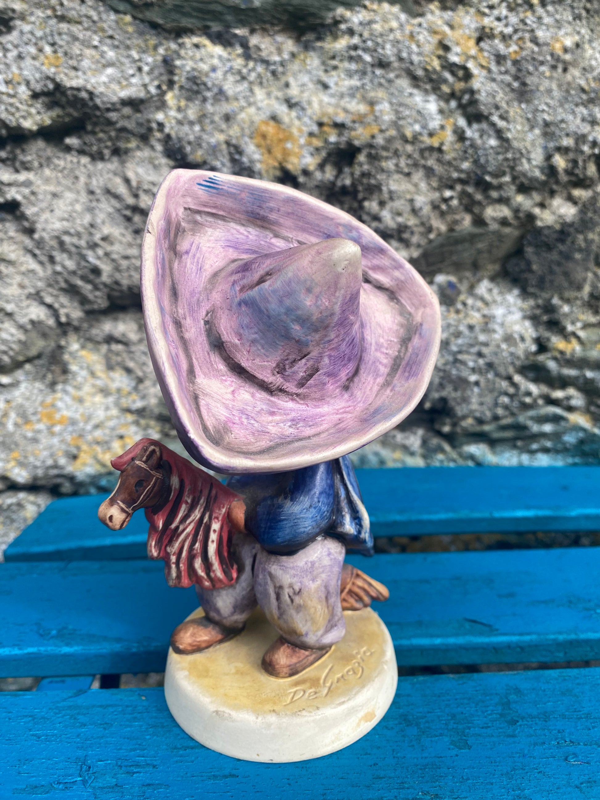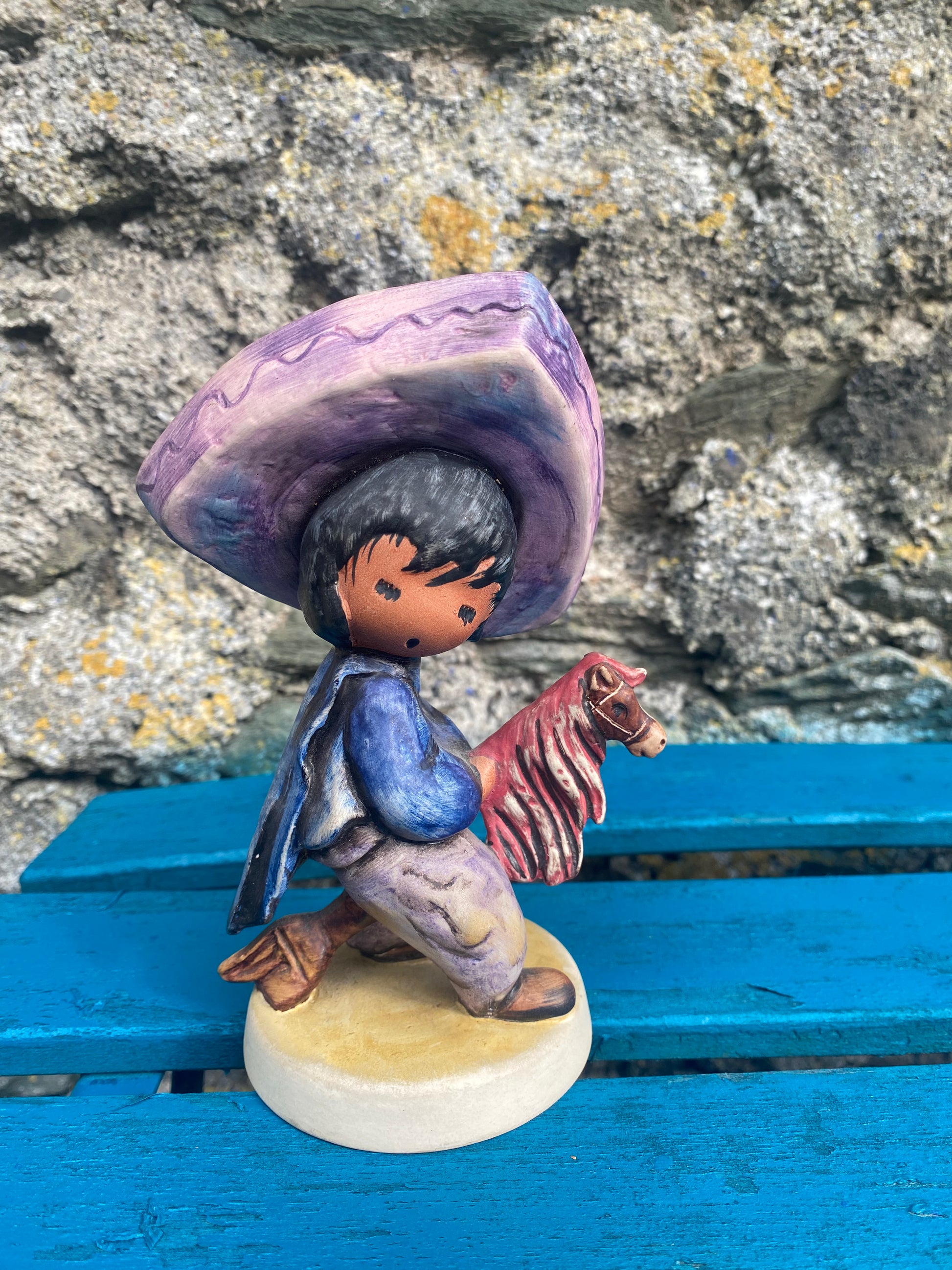 - This porcelain figurine depicts a young boy, often identified as Native American or Mexican, riding a hobby horse.
