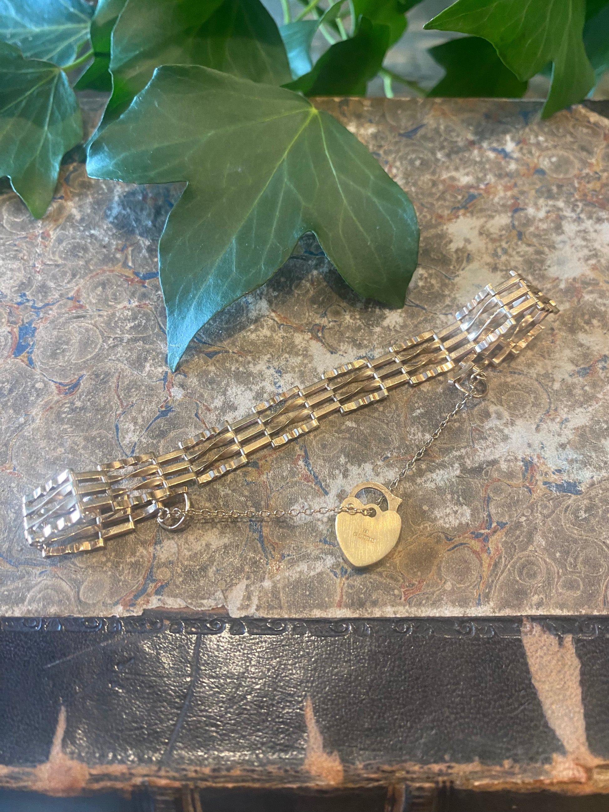 Vintage 9ct Gold Bracelet with Heart Padlock Clasp