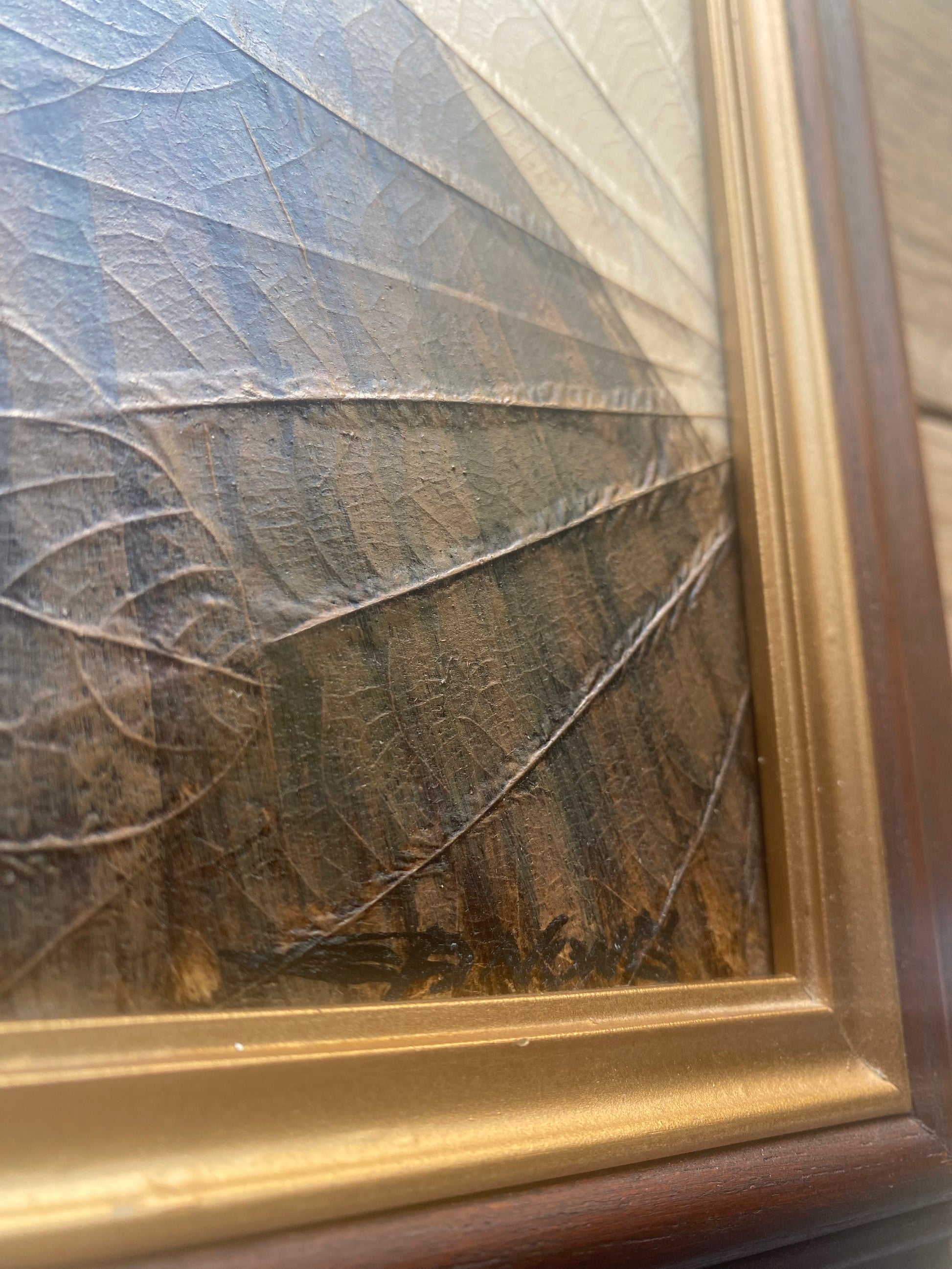 Vintage 1950s-60s oil painting of old Asian man on pressed tabacco leaf. It is signed - can not make out. Very much in the style of Maitree Juntaroopanmai, Thailand. Painting size 8x10 inch